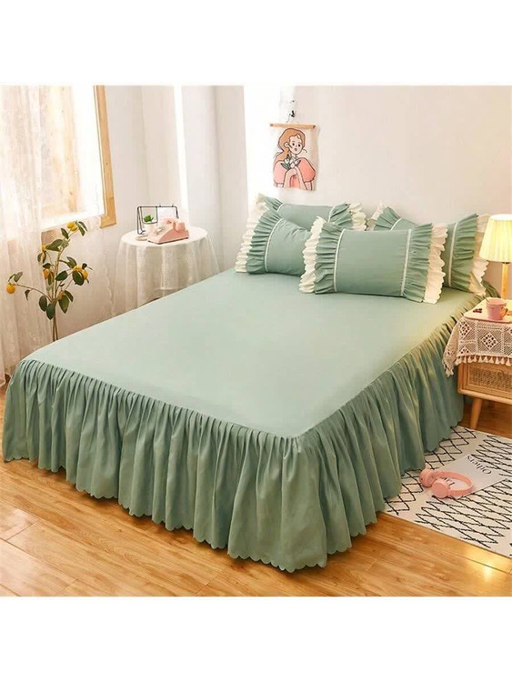 سرویس ملحفه کشدوزی شده (نیم ست) چین دار رنگ سبز سیج