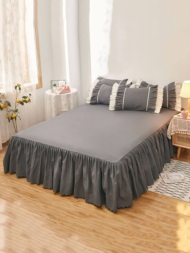 سرویس ملحفه کشدوزی شده (نیم ست) چین دار رنگ طوسی
