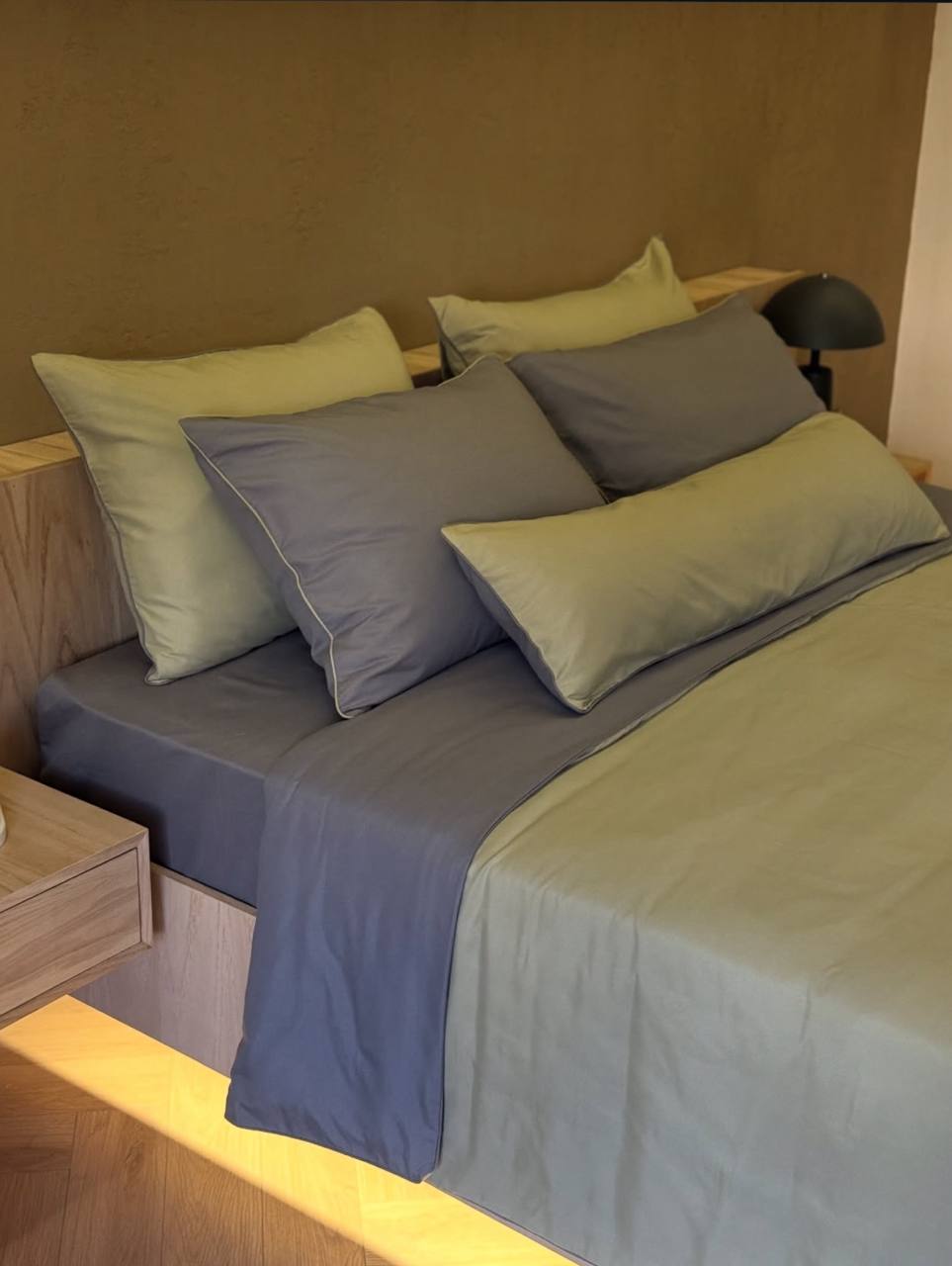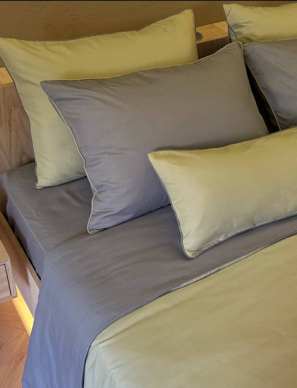 روتختی قیطون دوزی شده جنس میکرو براش ساده سبز سیج و طوسی تیره (رنگ قیطون زغالی)