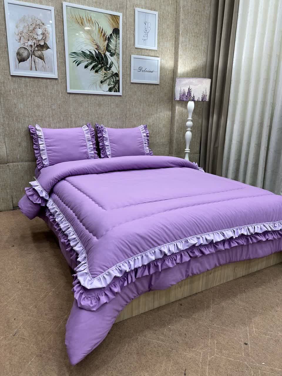 روتختی چین دار فانتزی مدل الیزه رنگ بنفش یاسی _ سفید جنس میکرو براش (نخ پنبه)