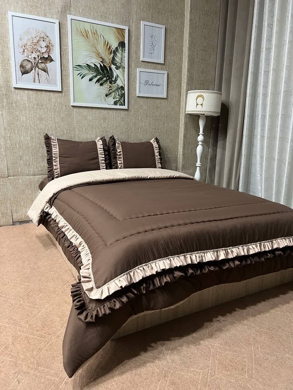 روتختی چین دار فانتزی مدل الیزه رنگ قهوه ا ی _ کرم جنس میکرو براش (نخ پنبه)