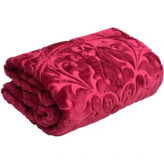 پتو گلبافت طرح گل برجسته تک رنگ - زرشکی