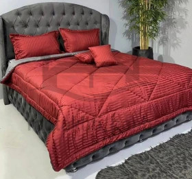 دونفره: 6تکه (لحاف، دو تا روبالشتی، دو تا رو کوسنی، ملافه کشدار) سایز ملافه تشک: 200 در 160 سایز لحاف: 220در 240