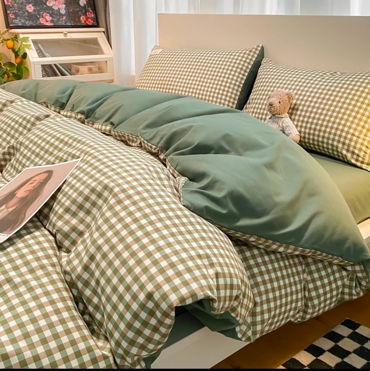 روتختی چاپی سبز چهارخونه پینترستی ( جنس نخ میکروتنسل)