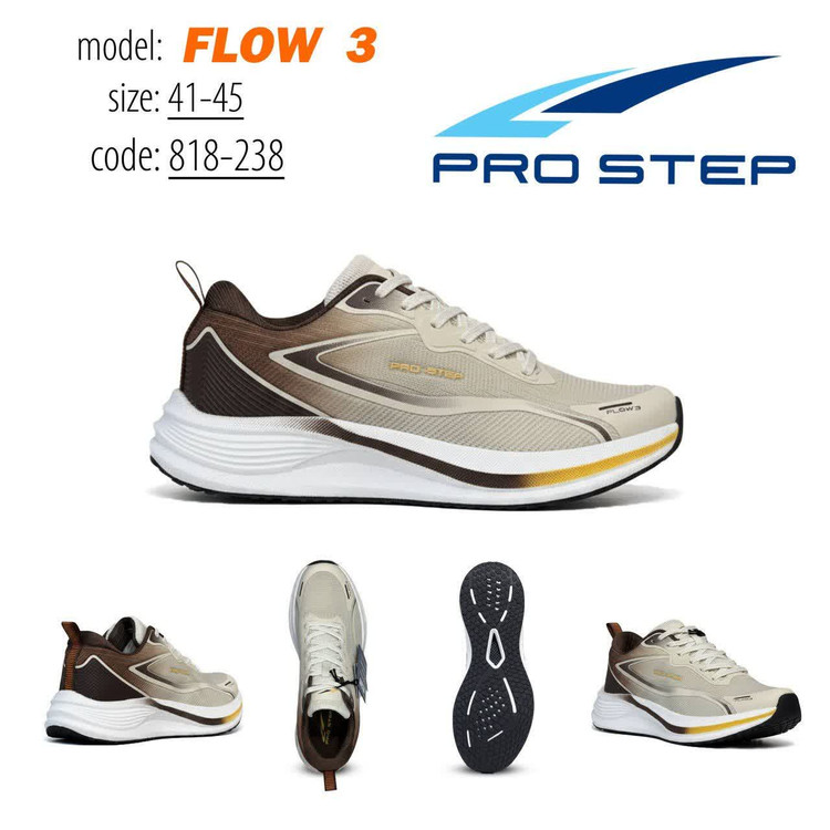 کفش و کتونی رانینگ پرو استپ اورجینال مدل فلو 3 رنگ سفید قهوه ای- ارسال رایگان