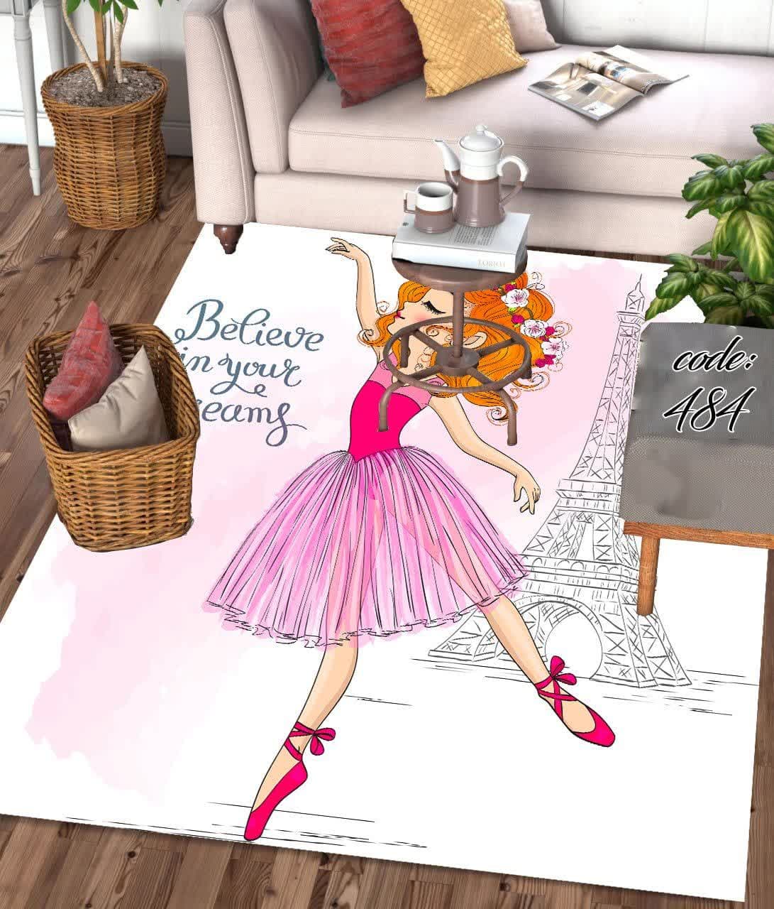 روفرشی کشدار کودک و نوجوان مخمل شانل ترک طرح دختر موفرفری زمینه صورتی کد 603 کودک